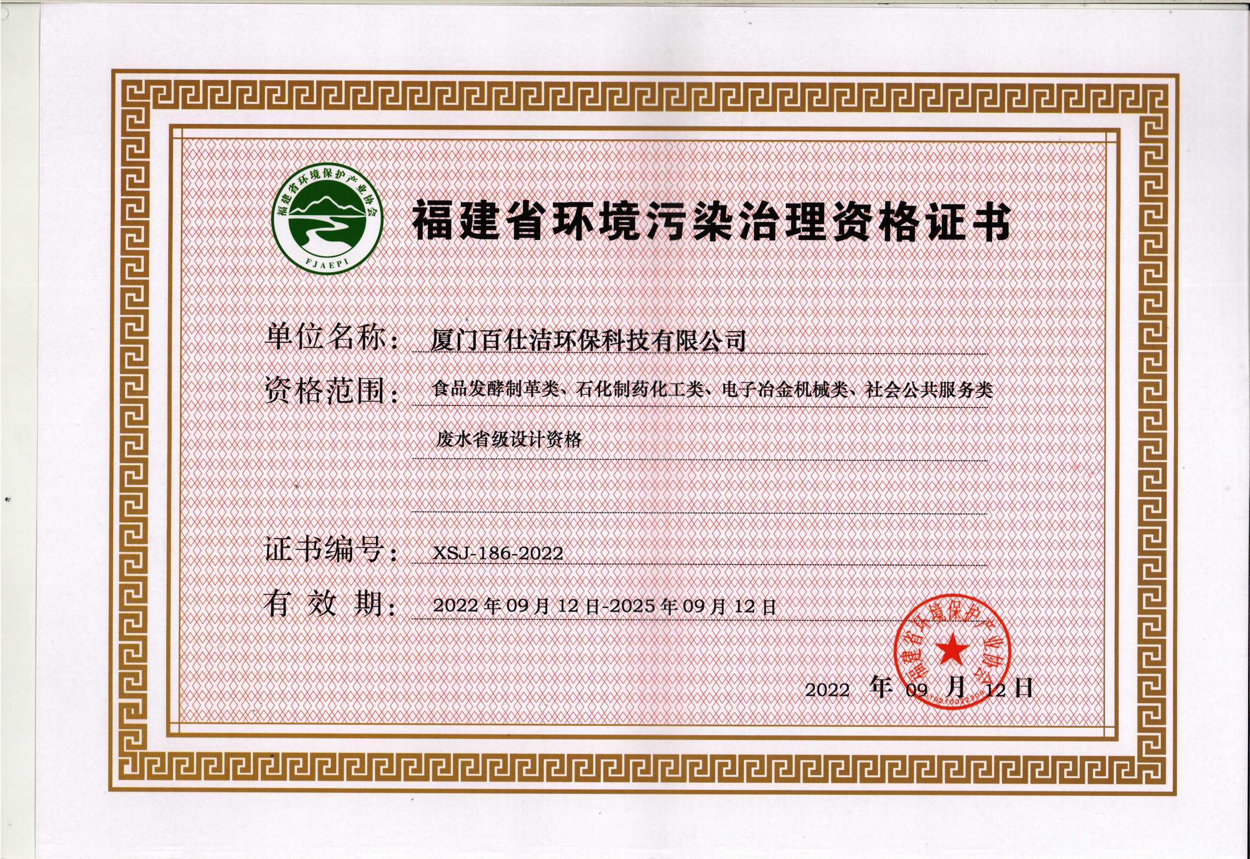 福建省環(huán)境污染治理設計資格證書